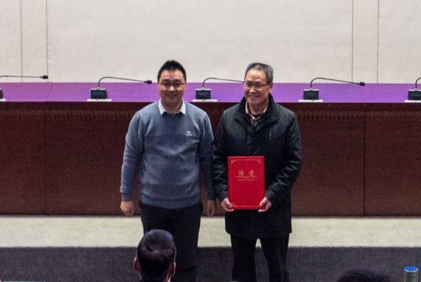 beat365中文官方网站党委书记汪再奇为“源·创科协”指导顾问周江羽颁发聘书。