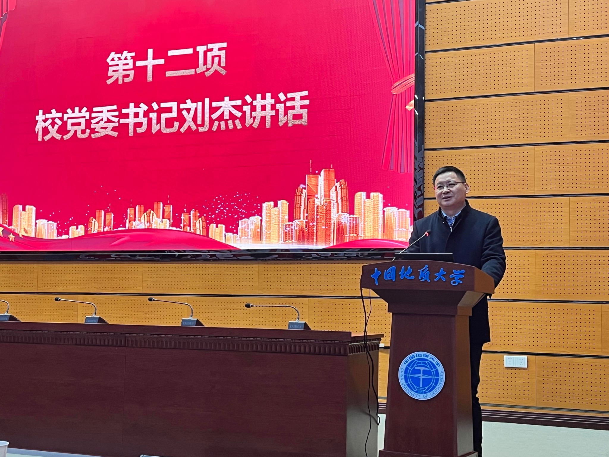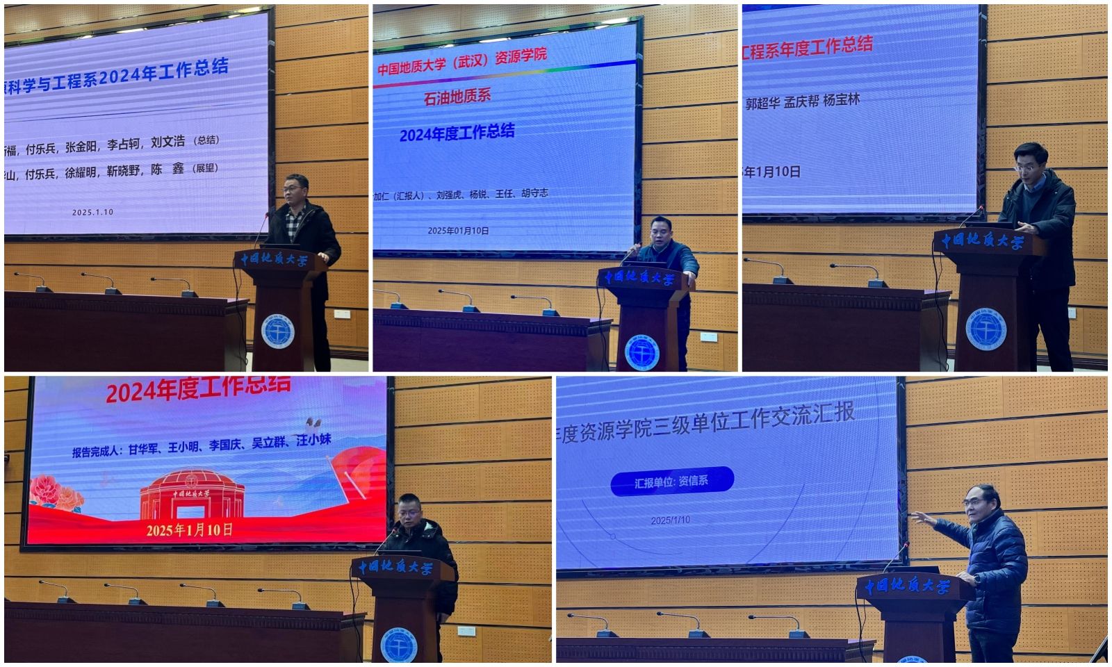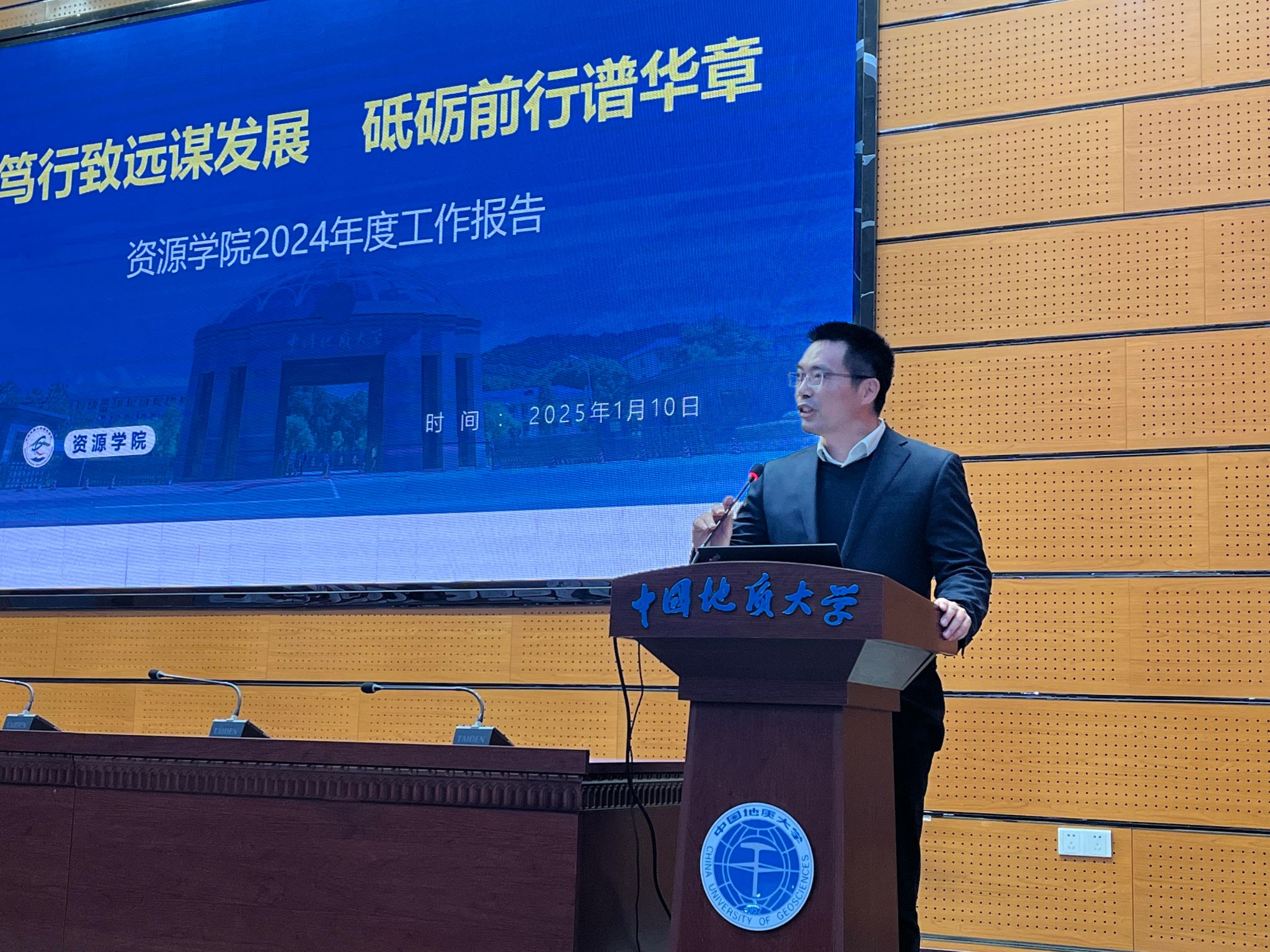 刘杰总结讲话。他充分肯定了学院2024年度工作成绩,他表示,beat365中文官方网站在落实立德树人根本任务,主动服务国家战略、学科前沿和行业产业需求,持续深化综合改革,优化人才培养机制,凝练学术方向,加强有组织科研,推进对外开放办学,各项事业发展取得了显著进展,为学校事业发展作出了积极贡献。他指出,学院要继续强化拔尖创新人才自主培养,打造学校地质工科人才培养“样板工程”;要扎实推进“双一流”建设,加快急需学科专业方向超常布局;要持续推进有组织科研,增强服务科技创新和产业发展的能力;要强化引育并举,打造高素质专业化教师队伍;要坚持和加强党的领导,不断增强基层党组织政治功能和组织功能。他强调,学院要提高站位、勇担使命,守正创新、锐意改革,干在实处、走在前列,以扎实业绩回答好“教育强国、地大何为”的时代答卷。