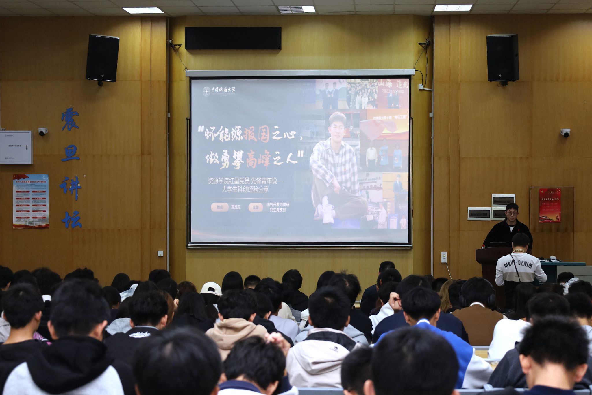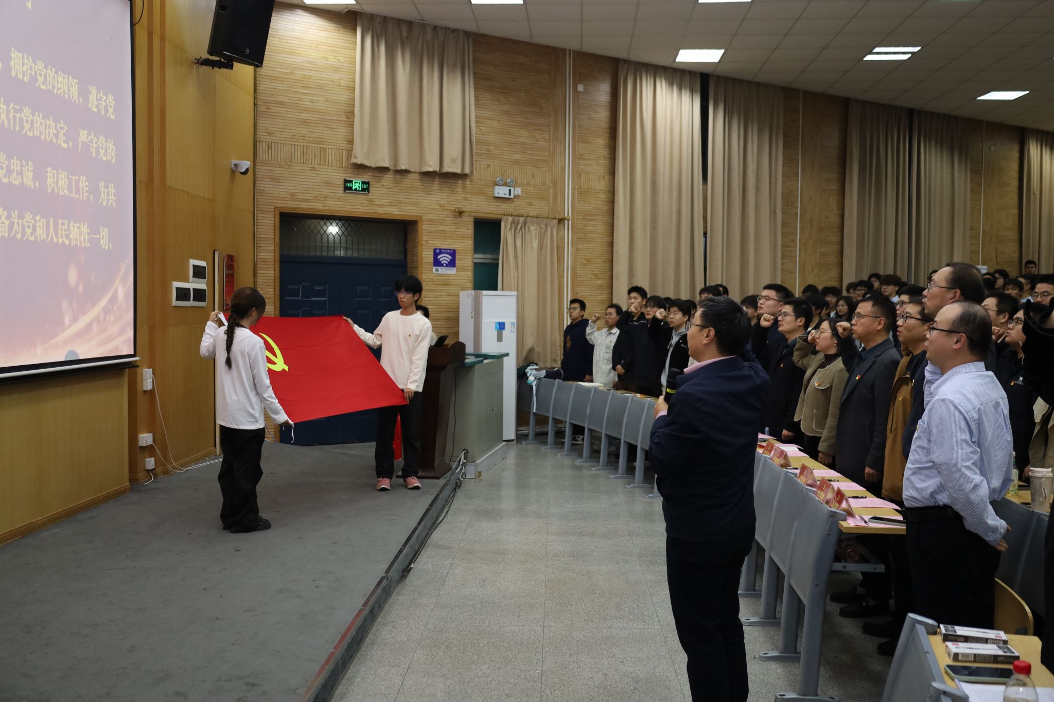 第一阶段伊始,学院党委书记汪再奇领誓入党誓词,并以《青春向党 地质报国》为主题,为与会全体师生讲授了一场生动的党课。