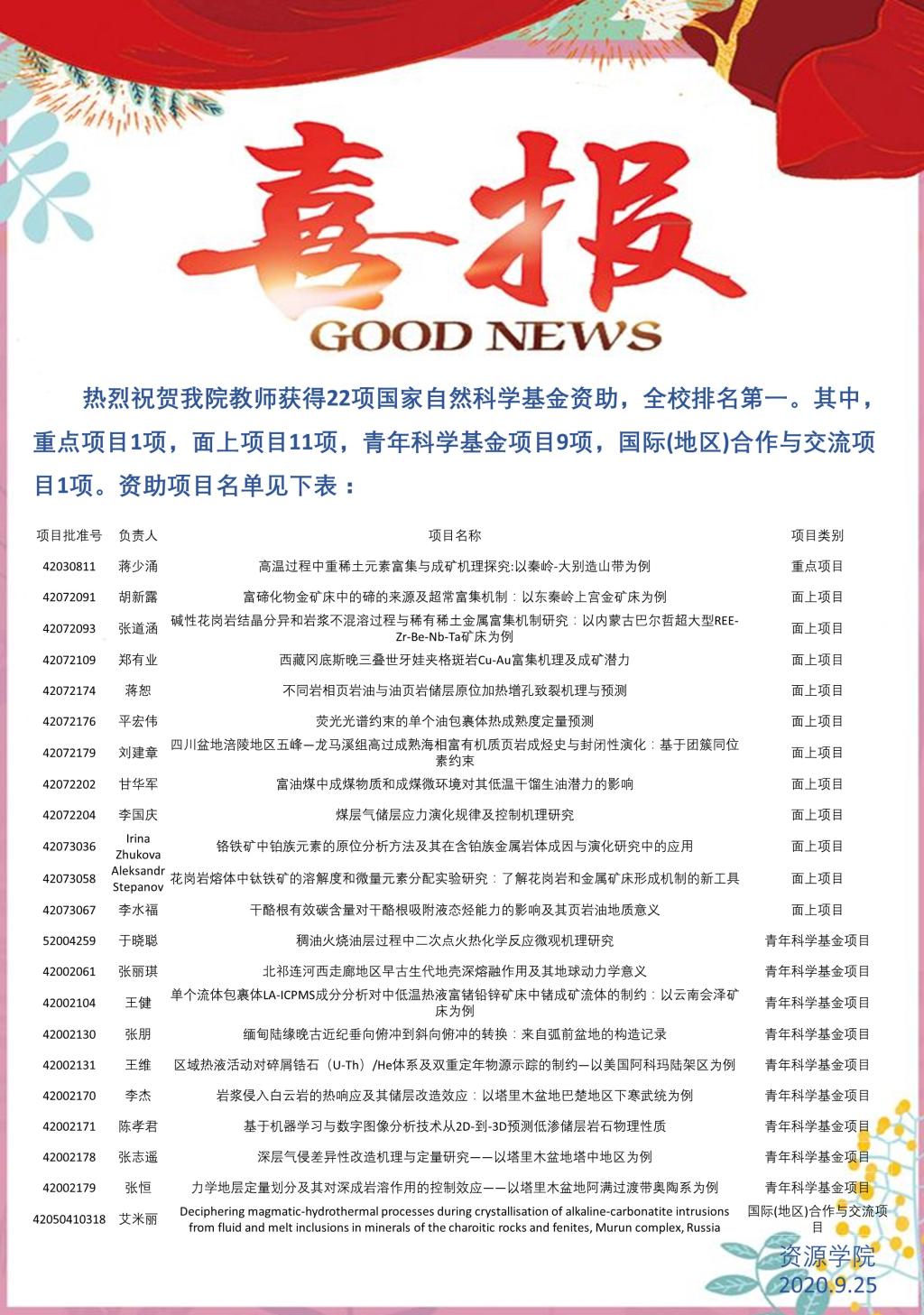 热烈祝贺我院教师获得22项国家自然科学基金资助,全校排名第一