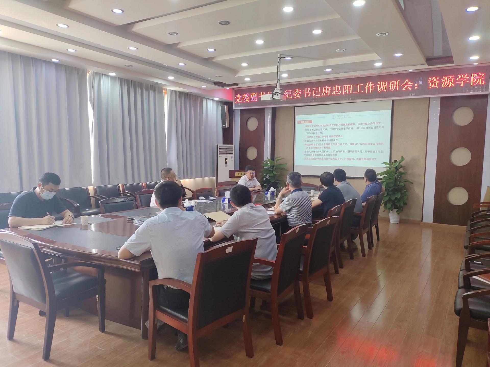9月29日下午,学校党委副书记、纪委书记唐忠阳到beat365中文官方网站调研,了解学院事业发展情况,指导学院党建和纪检工作。学院领导班子全体成员参加会议,党委书记高复阳主持会议。