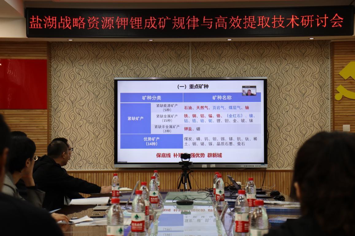 beat365中文官方网站教授刘成林主持研讨会。各专家学者以“盐湖钾锂成矿规律与高效提取技术”为主题,就盐湖钾锂资源的成矿理论、勘查与开发现状、面临的机遇与挑战等问题进行了系统的汇报和技术交流探讨。