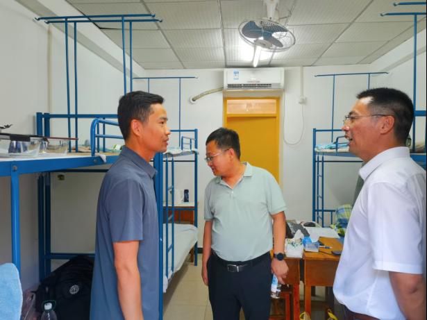 高复阳、严德天首先来到教工宿舍看望慰问实习教学团队教师,了解教学安排和实习进展。他们对教学团队在高温考验中完成备课任务、在暴雨影响下保障学生安全到站并及时调整和完成教学任务表示肯定和感谢,叮嘱教学团队要把安全放在首位,稳妥完成后续教学任务,持续丰富学生实习内容和在基地生活,给学生留下宝贵和难忘的青春记忆,打下坚实的野外地质工作基础。