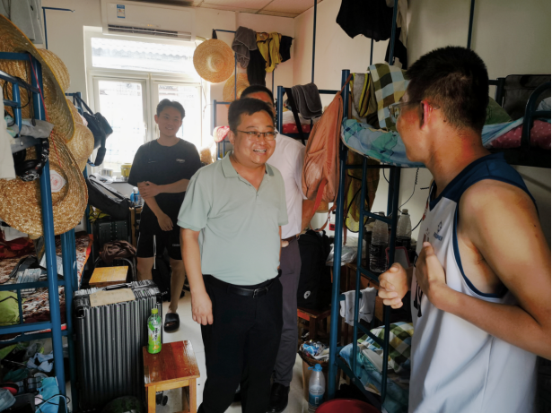 期间,高复阳、严德天看望了因暴雨受困晚到站学生,了解他们的受困经历,为他们坚韧的意志、向学的态度和主动参与志愿服务工作点赞,祝愿他们在实习中取得佳绩。