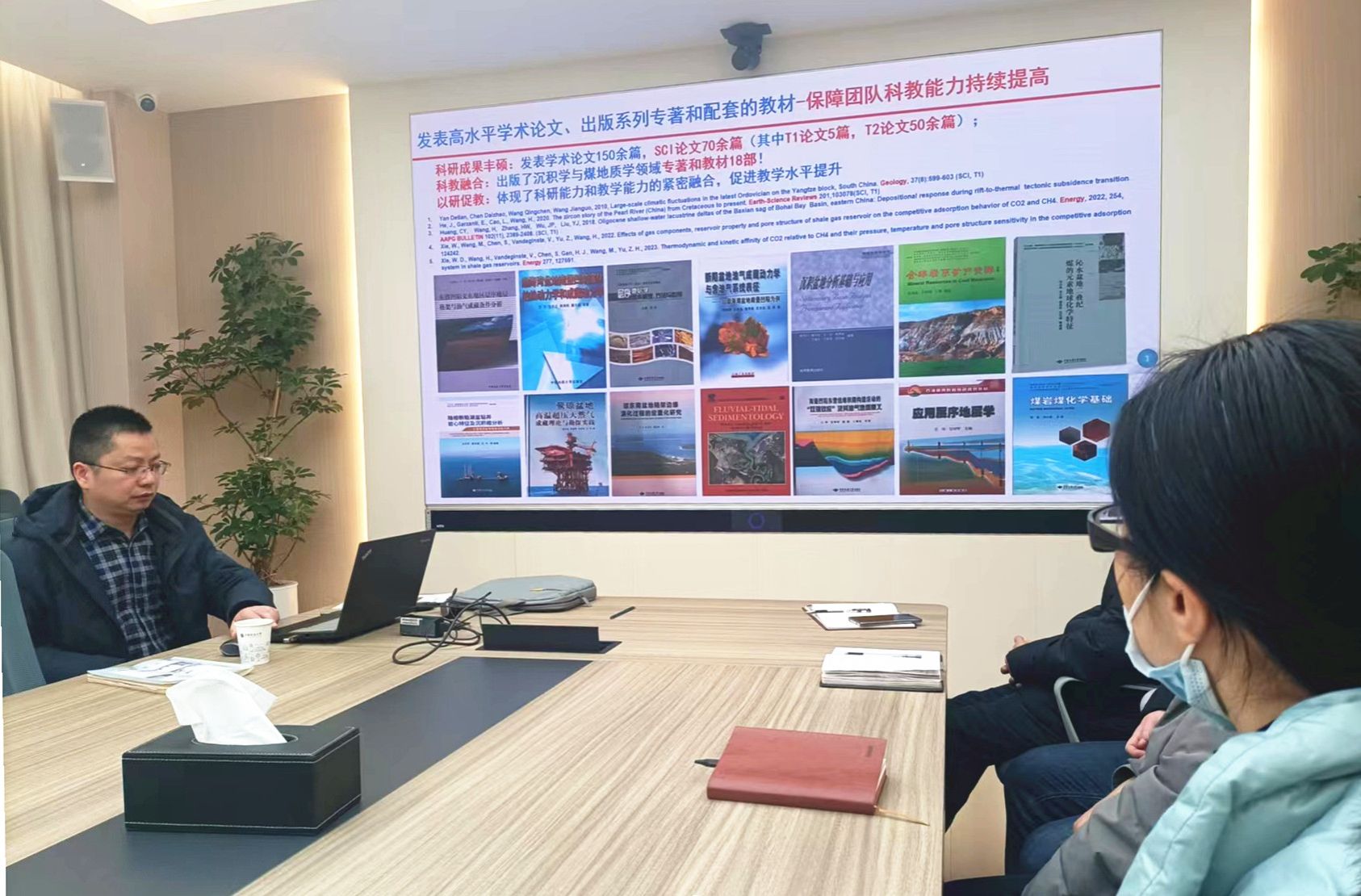 甘华军代表煤地质学基层教学组织介绍了目前筹备申报国家一流本科课程《煤地质学》的基本情况,重点就课程团队情况、课程建设目标和计划、课程特色与创新、课程教学评价、产教融合和对外授课与培训等方面进行了介绍,观看了课程组录制的说课视频。