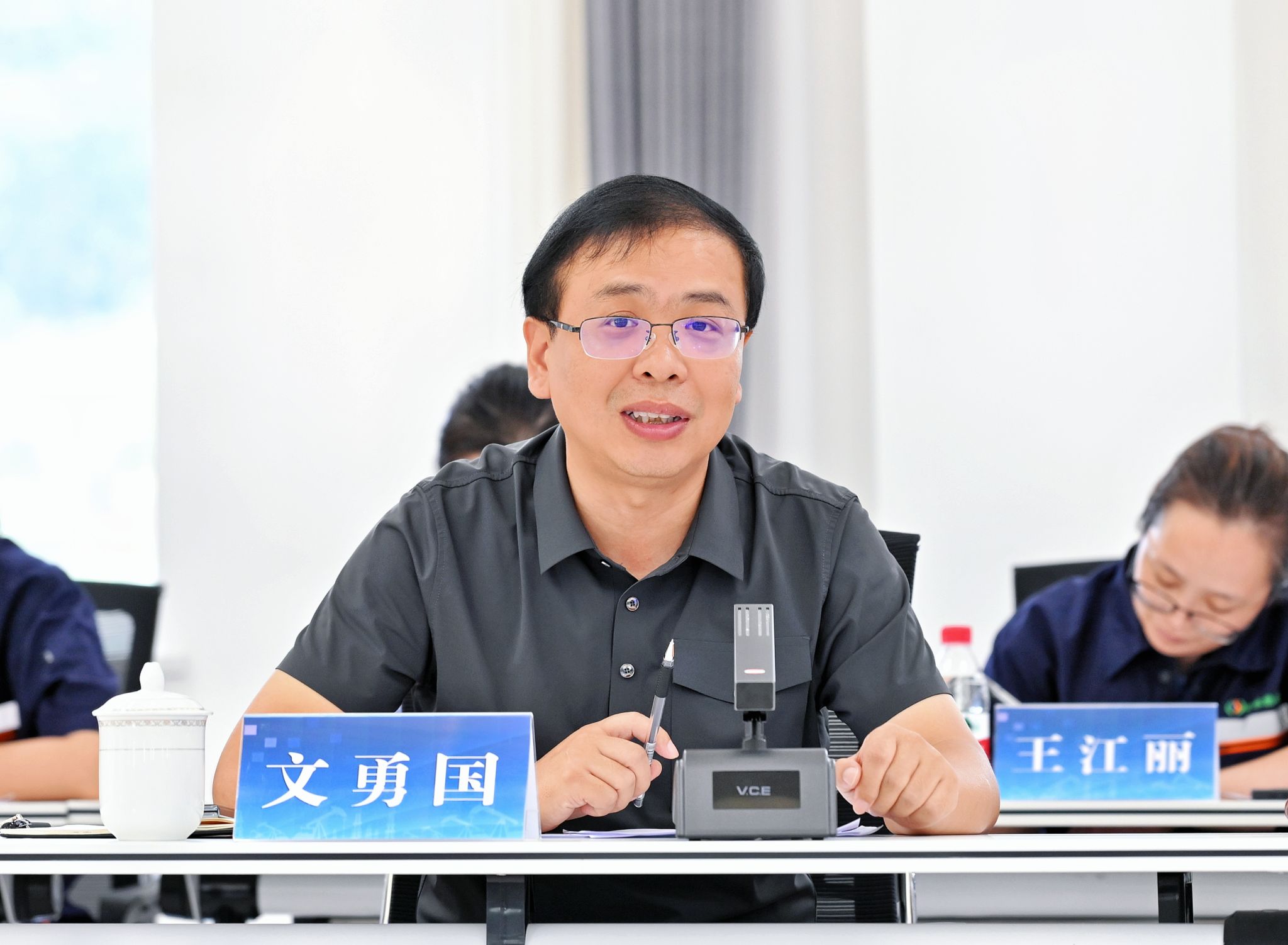 文勇国介绍项目合作意向及成果。他强调,产学研战略合作将聚焦实训基地建设与技术研发推广。他表示,公司将积极推动校企长期合作机制的构建,全力支持实训基地建设,确保产教融合落实落深;持续投入资金进行技术研发,携手学院进行理论技术创新共建共享,加速成果转化应用,助力煤炭产业改造升级,打造煤层气产业人才高地、技术高地。